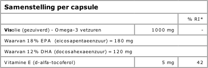 Visolie, gelatine (capsule), glycerine, water, antioxidant: natuurlijke vitamine E